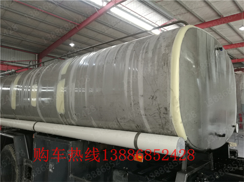 東風不銹鋼保溫水車價格多少錢一輛_國六熱水保溫車,10-12噸熱水車為保證熱水在運輸過程中不降溫,其罐體特別用巖棉、聚氨酯發泡、硅酸鋁等保溫材料做了一層保溫層隔熱層,熱水罐車罐體可根據用戶的要求選用碳鋼或不銹鋼材料制作,前者成本低,適合拉送用的熱水,后者經久耐用,適合用拉送飲用熱水