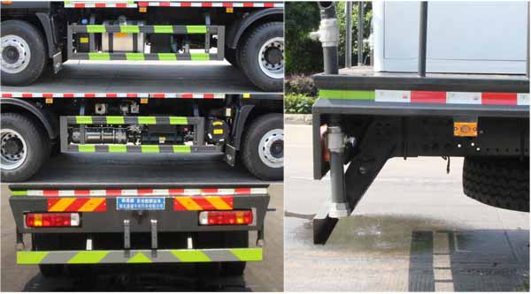 該車用途為抑塵降霾.主要裝置為罐體及噴霧裝置.罐體總容量:10.55立方米,罐體有效容積:10立方米,罐體外形尺寸(長×長軸×短軸)(mm):2800×2450×1720.ABS控制器型號為CM4XL-4S/4M,ABS控制器生產企業為廣州瑞立科密汽車電子股份有限公司.側、后防護材料均為:Q235碳鋼,連接方式均為:螺栓連接,后部防護截面尺寸(mm):120×50,后部防護離地高度(mm):470.僅采用底盤3950mm軸距改裝.選裝前部電子炮樣式;選裝前部不帶電子炮.當前部選裝不帶電子炮時,車長7780mm,無前伸.當前部選裝帶電子炮時,車長8280mm,前伸為500mm.隨底盤選裝新前圍及LOGO.選裝前面板"福田·領航"裝飾字樣. |