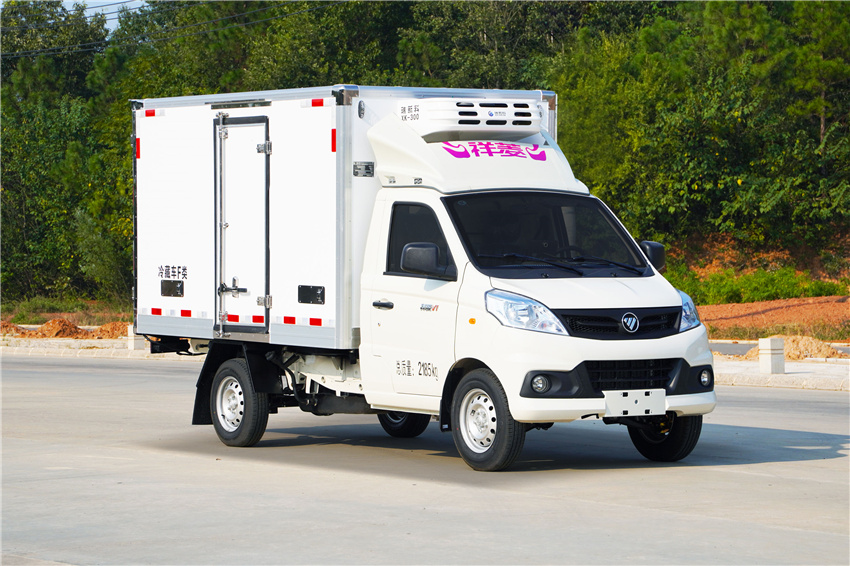 福田祥菱M1冷藏車采用國六汽油東安115馬力(DAM15KR)發動機,5擋變速箱,2750軸距,高配,原廠空調,后雙胎,5檔變速箱,175R14后雙胎,122后橋,ABS,電動助力轉向,
