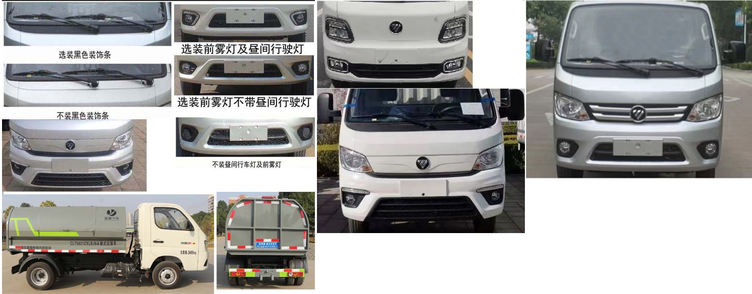 福田垃圾車,廂式卸式垃圾車,祥菱自裝自卸式垃圾車,掛桶式垃圾車,該車專用裝置為箱體、液壓控制系統(tǒng)等,主要用于實(shí)現(xiàn)垃圾的裝載和轉(zhuǎn)運(yùn)卸料作業(yè);ABS系統(tǒng)控制器型號(hào)是YF9,ABS系統(tǒng)控制器生產(chǎn)企業(yè)是武漢元豐汽車電控系統(tǒng)有限公司.發(fā)動(dòng)機(jī)與油耗申報(bào)值(L/100km)對(duì)應(yīng)關(guān)系為:DAM15KL/8.1,DAM16KL/7.5.發(fā)動(dòng)機(jī)DAM15KL,DAM16KL對(duì)應(yīng)的最大凈功率分別為80kW,85kW,分別對(duì)應(yīng)最高車速100km/h,110km/h.該車可選裝直接供電式ETC車載裝置.隨底盤選裝帶前霧燈不帶晝間行駛燈造型,選裝不帶前霧燈及晝間行駛燈造型,可選裝黑色裝飾條,可選裝不帶黑色裝飾條.該車型整備質(zhì)量包含隨車工具,不包含備胎、滅火器.貨箱質(zhì)量與整備質(zhì)量對(duì)應(yīng)關(guān)系為(mm):580/1800,475/1700;貨箱材質(zhì):Q235;底板厚度:3mm,左右前后側(cè)板厚度:2mm.車長/軸距/后懸對(duì)應(yīng)關(guān)系為(mm):4400/2400/925,4600/2750/775.選裝廂體樣式. |