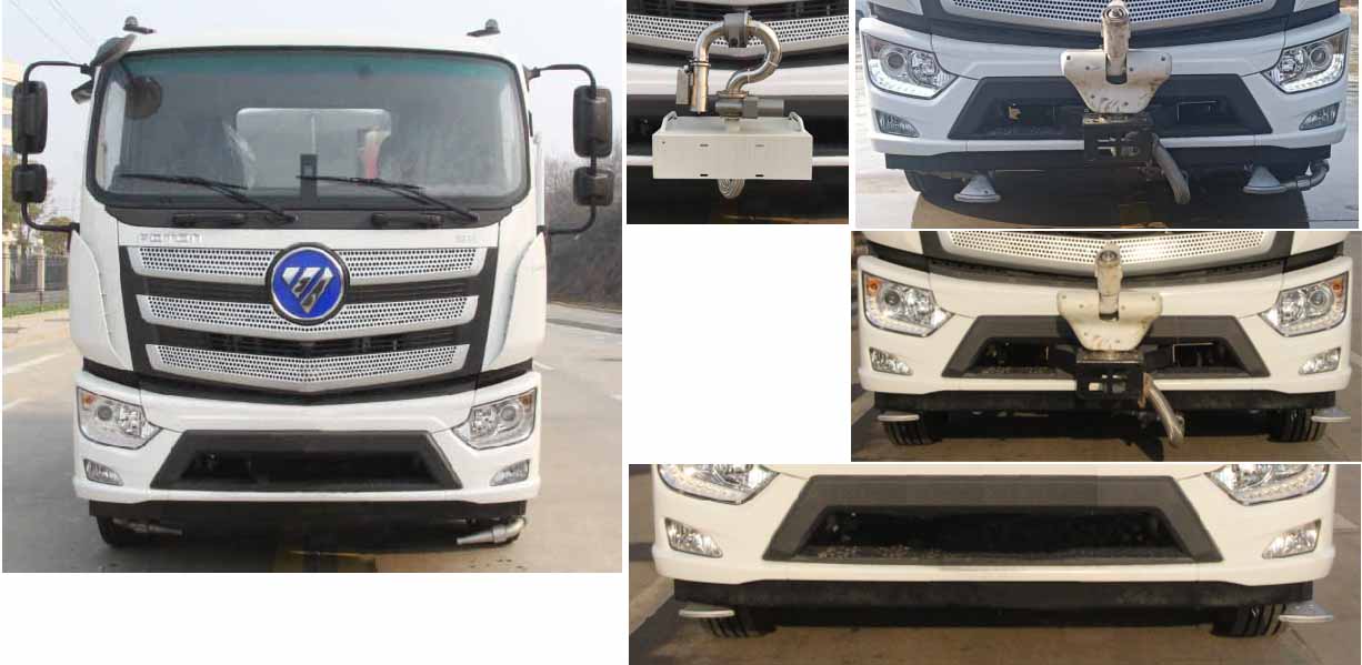 該車主要用于城鄉(xiāng)園林綠化,路面噴灑;主要裝置為罐體及噴灑裝置.罐體總?cè)萘?/span>:10.6立方米;罐體有效容積10.1立方米;介質(zhì):丙酮水溶液,密度950千克/立方米,罐體外形尺寸(長×長軸×短軸)(mm):4600×2300×1450.側(cè)防護(hù)采用電池護(hù)罩代替,材料為Q235碳鋼,螺栓連接;后防護(hù)材料為:Q235碳鋼,連接方式為:螺栓連接,后部防護(hù)截面尺寸(mm):120×50,后部防護(hù)離地高度(mm):490;ABS型號/生產(chǎn)企業(yè):ABS-E/采埃孚商用車系統(tǒng)(青島)有限公司;電池種類:磷酸鐵鋰電池,儲能裝置單體生產(chǎn)企業(yè):寧德時代新能源科技股份有限公司,儲能裝置總成生產(chǎn)企業(yè):寧德時代新能源科技股份有限公司;電機型號/生產(chǎn)企業(yè):TZ375XSSF-SZF611/陜西法士特齒輪有限責(zé)任公司,額定功率:105kW,峰值功率:175kW.選裝前部電子水炮樣式,選裝前部不帶電子水炮,該狀態(tài)下車長為8100mm;當(dāng)前部安裝電子水炮時,車長為8600mm,車輛前伸500mm.后部箭頭指示燈僅在車輛作業(yè)時開啟.選裝車輛前部鴨嘴裝置. |