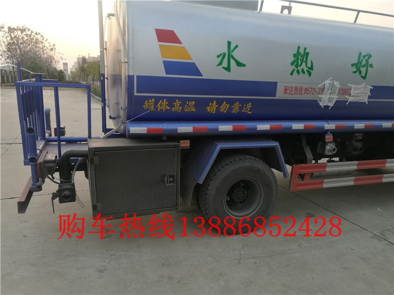 ★ 我公司生產的保溫運水車(熱水車)是東風8噸浴池送水車  酒店送水車,在灑水車基礎上進行專業的罐體防腐防銹處理(或采用不銹鋼等耐腐蝕材料制作飲用水車),并在罐體外加裝保溫層,熱水 泵,耐熱管道,使車輛具有保溫耐熱性能,熱水車適用于賓館,酒店,洗浴中心,野外工程隊,搶險救災等處運輸熱水及生活用水的專用車。