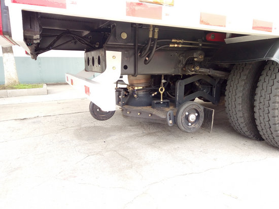 | 防護材料:Q235A碳鋼,左右側面防護裝置與專用裝置相干涉,故豁免;后下部防護與車架采用焊接連接,后部防護斷面尺寸(mm):100?0,后部防護離地高度(mm):510,隨底盤選裝駕駛室。該車僅選用(mm):3950軸距,采用帶ABS的底盤,ABS型號為3631010-C2000,生產廠家為東風電子科技股份有限公司制動系統公司。 |