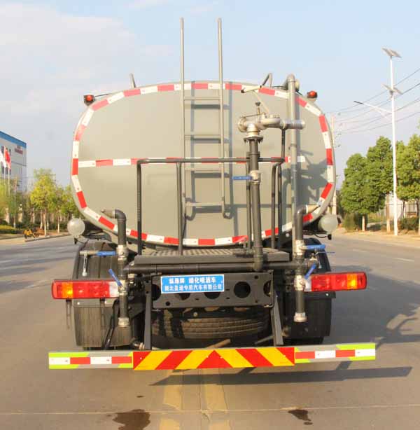 該車主要用于城鄉(xiāng)園林綠化噴灑作業(yè).主要裝置為罐體及噴灑裝置.罐體總?cè)萘?/span>:10.06立方米,罐體有效容積:9.58立方米,罐體外形尺寸(長(zhǎng)×長(zhǎng)軸×短軸)(mm):4200×2300×1450.ABS系統(tǒng)型號(hào):ABS-E;生產(chǎn)企業(yè):威伯科汽車控制系統(tǒng)(中國(guó))有限公司.ABS系統(tǒng)型號(hào):ABS-VI.E;生產(chǎn)企業(yè):廣州瑞立科密汽車電子股份有限公司;ABS系統(tǒng)型號(hào):3550D-1010;生產(chǎn)企業(yè):東科克諾爾商用車制動(dòng)系統(tǒng)(十堰)有限公司.側(cè)、后防護(hù)材料均為:Q235碳鋼,連接方式均為:螺栓連接,后部防護(hù)截面尺寸(mm):120×50,后部防護(hù)離地高度(mm):470.僅采用底盤3950mm軸距改裝.選裝前部電子霧炮裝置樣式;選裝前部不帶電子霧炮裝置,當(dāng)前部選裝不帶電子霧炮時(shí),車長(zhǎng)7450mm,7785mm,無(wú)前伸.當(dāng)前部選裝帶電子霧炮時(shí),車長(zhǎng)7950mm,8285mm,前伸為500mm.隨底盤選裝限速裝置,最高車速(km/h)為90.后軸僅采用鋼板彈簧懸架. |